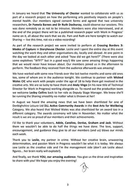 As part of our exciting collaboration with the University of Chester, members of Work in Progress performed at 'Crossing Borders 3: Modes of Capture' at Storyhouse Theatre, Chester. There were speakers and guests from everywhere from the UK to Portugal, and the entire event was incredibly inspiring!